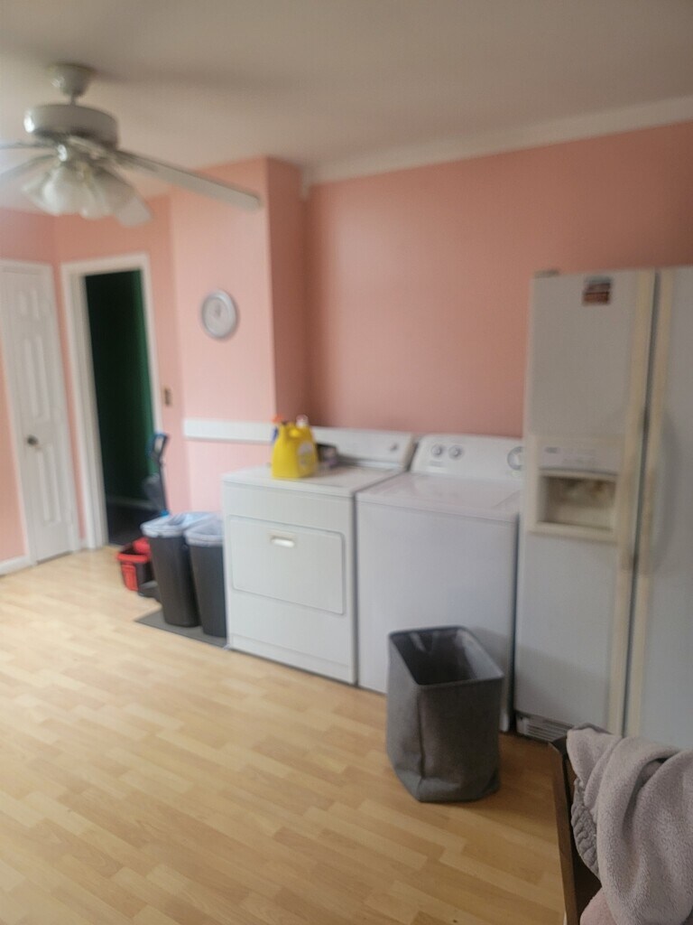 To upstairs apartment three other people share the house very quiet very respectful wash and dryer in the unit parking very nice place to live