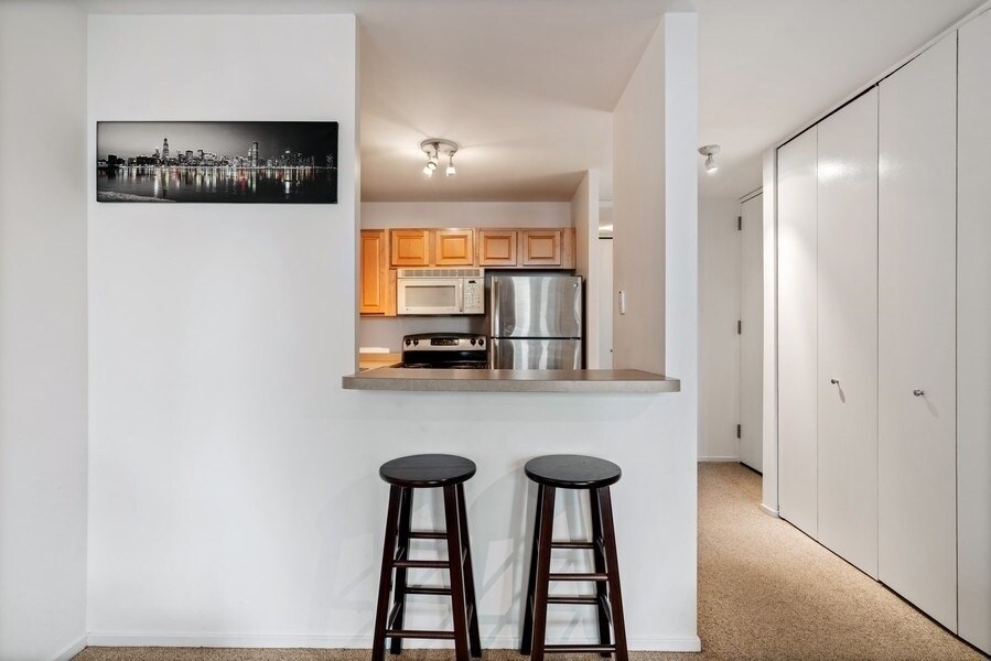Spacious updated east-facing studio in sought-after Newberry Plaza with private balcony and stunning lake and city views in the heart of Chicago's Gold Coast. (**RENT includes heat, air conditioning, cable/internet and gym**) This bright, open-concept home features generous living space, a large walk-in closet/dressing area, breakfast bar, updated stainless steel appliances including dishwasher, and excellent storage throughout. Prime Gold Coast location just steps from Oak Street Beach, Gibson's, Maple & Ash, Michigan Avenue, public transportation, Northwestern, Loyola, River North, and downtown. Rent includes heat, air conditioning, cable, and internet. Full-amenity building offers 24-hour door staff, professional on-site management, newly updated fitness center, outdoor pool and sundeck, party room, bike storage, private storage locker, and modern card-operated laundry. Garage parking available for additional cost; street parking also available with residential permit. No security deposit; move-in/out, application and lease processing fees apply. Cats considered on a case-by-case basis with pet fee. Sorry, no dogs. **AVAILABLE MAY 1ST** Owner is a licensed Illinois Real Estate Broker