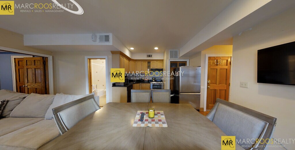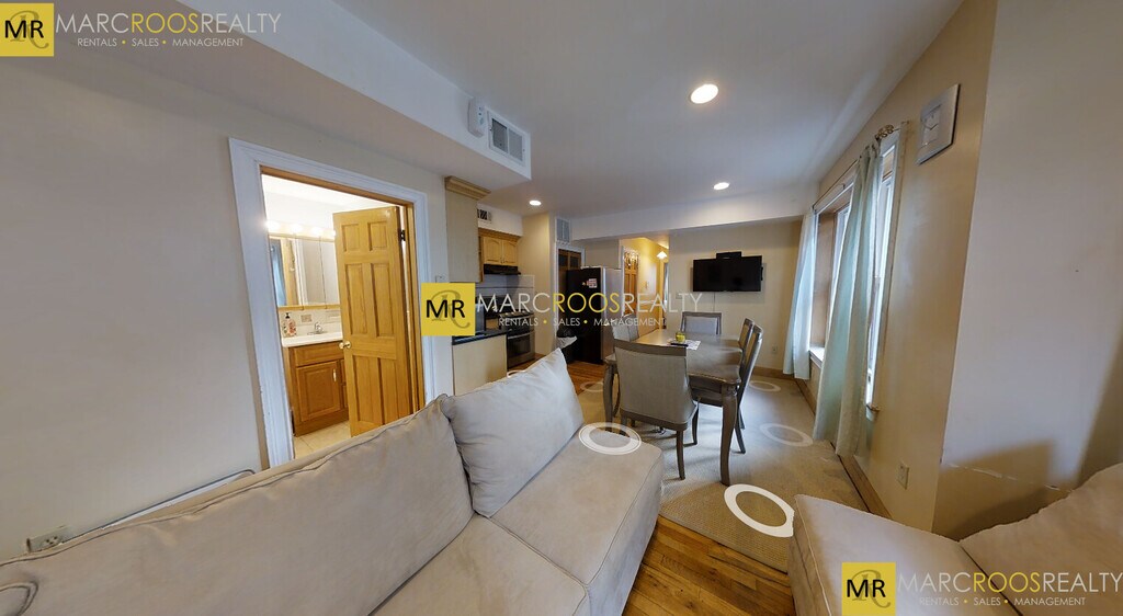 FURNISHED floor through unit in Brownstone building near Ruggles that features: - Glossy hardwood flooring throughout! - Fully equipped modern kitchen w/ dishwasher! - Spacious & sunny open concept living room/dining room! - Primary bedroom w/ en-suite private bathroom! - Large closet in the generously sized 2nd bedroom! - Smaller yet sizable bay front 3rd bedroom! - Updated tiled full main bathroom w/ bathtub! - Laundry machines in building's basement!