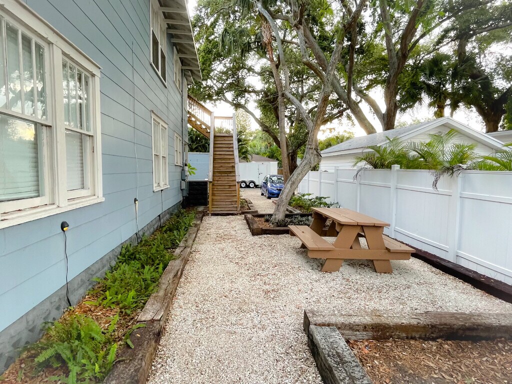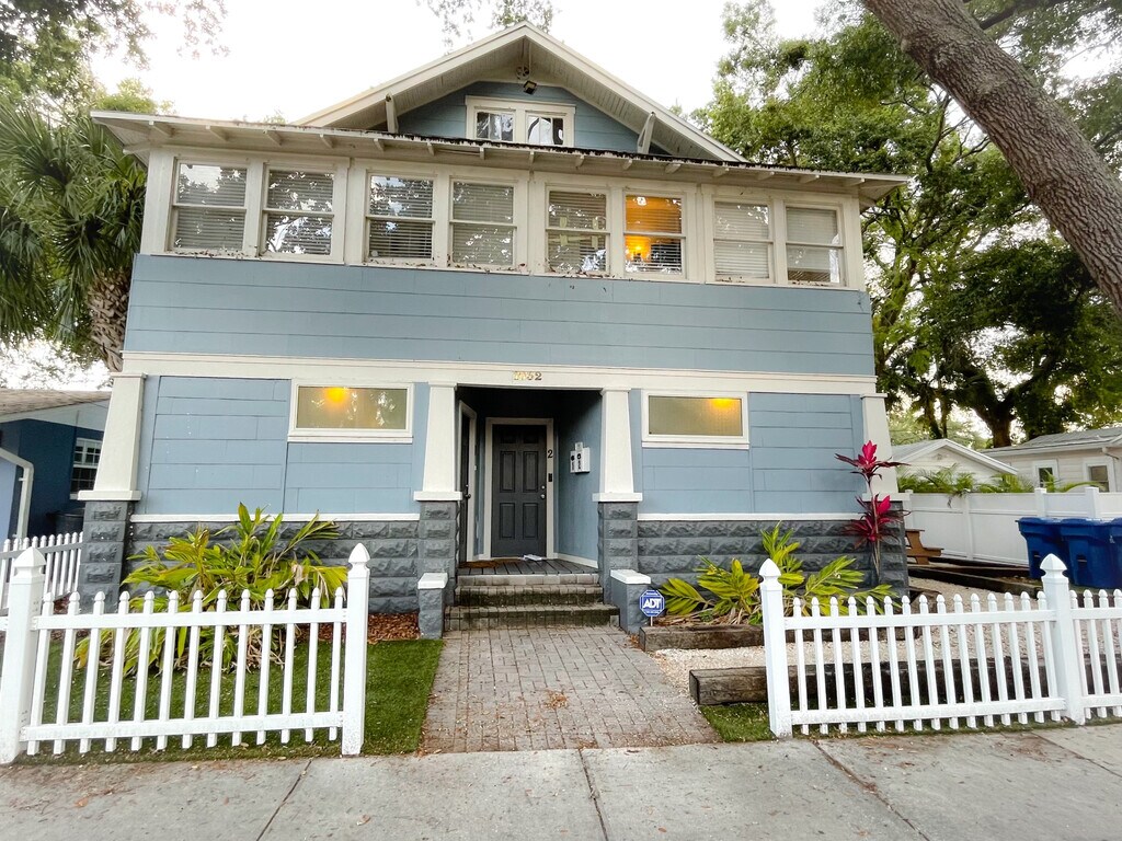 Tucked down at the end of a banyan tree lined street in historic uptown your new home awaits you. Woven in a historic neighborhood of brick lined streets this property is close to everything, downtown, shopping, restaurants and more while still providing you a safe and quiet space away from the city noise. Just minutes and less than a mile from downtown and the newly finished St. Pete pier this property sits on a double lot with off street parking on a quiet tranquil street. Recently remodeled this two bedroom two bath comes with many great upgrades. Hardwood floors throughout, in unit washer and dryer, a large 40 gallon water heater ensures you never run out of hot water, granite counters and backsplash in the kitchen with plenty of extra solid wood cabinetry for storage. You'll find Microwave, stove and oven, dishwasher, garbage disposal and all full size stainless steel appliances for a chefs dream kitchen. Each room has multiple windows bathing each space with natural light and ceiling fans throughout keep the spaces airy and circulate the cool air from the central AC system. Extra bonus space off the two of the bedrooms has been used as walk in closets, private office space for at home workers, a private library or reading room or just a sitting area looking out onto a quiet tree lined street. This unit has a private porch, and a extra storage utility area off the kitchen. The bathrooms are tiled, one with a bath and shower and the other with a clawfoot tub perfect for soaking with a good book to melt away the stresses of the day. This property also has well maintained landscaping with two outdoor areas. A must see property ready to make your home! Within walking distance of shopping and restaurants you can have all the benefits of living within walking distance to downtown St. Pete with all its art and culture and still have the quiet tranquil life like a suburb in historic uptown and its quiet brick lined streets. Just a two blocks from Crescent lake park with tennis courts, pickle ball courts, baseball field, dog park, and wide open fields with playground and walking paths for exercise and recreation. Contact us with any questions, if you would like to set up a showing or if you are ready to call this property home.