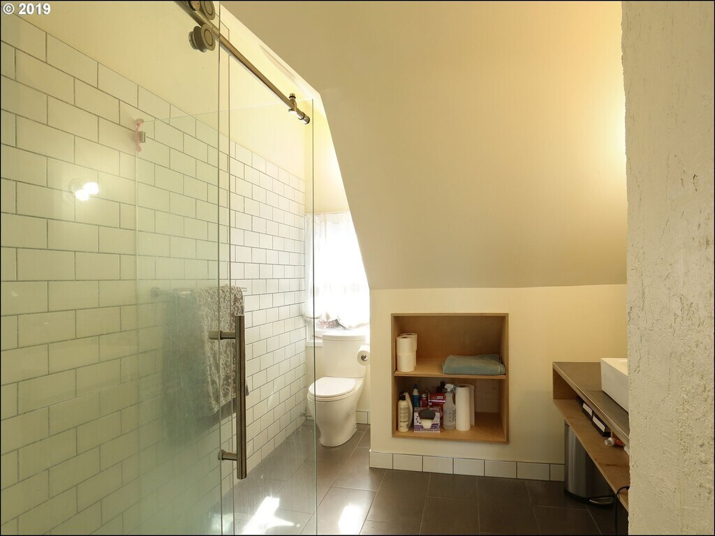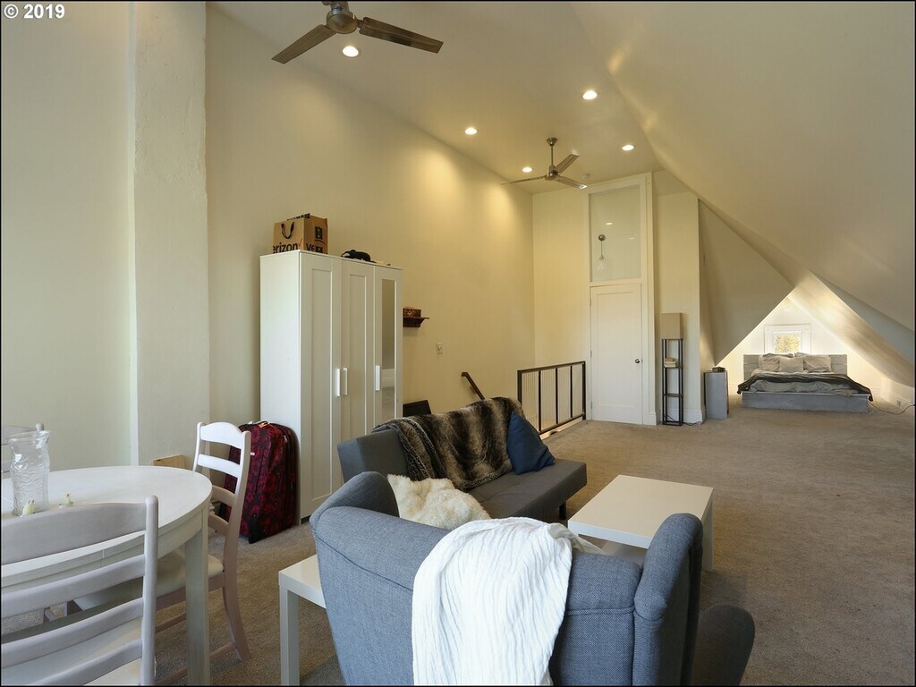 Spacious, updated unit in turn of the 20th century Victorian plex. 1800 square feet over two floors, with a dedicated off-street, secure/enclosed covered parking space. First floor has 2 bedrooms, bathroom, kitchen and living room. Second floor has vaulted 16 foot ceilings with bedroom bathroom and nook. 5 min walk to Orange line MAX stop. - 1,800 sqft over 2 floors - 3 bedroom / 2 bathroom - dedicated off street, secure/covered parking - private outdoor deckspace - updated kitchen, appliances - gas heat - washer/dryer in-building access No smoking. Cats, small dogs ok.