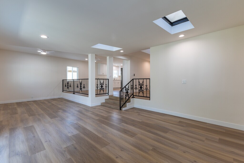 Nestled in a peaceful and desirable neighborhood, 10342 Dempsey Ave in Granada Hills, CA 91344 is a stunning newly renovated 2-story home offering 3 spacious bedrooms and 2.5 baths. As you step inside, you'll immediately be drawn to the elegant hardwood floors that flow seamlessly throughout the entire home, complemented by chic marble-tiled flooring in the bathrooms for a stylish contrast. The heart of this home lies in its expansive primary bedroom, an ideal sanctuary featuring not one, but two walk-in closets, offering ample storage space for all your needs. The ensuite bathroom is a luxurious retreat with a freestanding bathtub, a separate walk-in shower, and dual vanity sinks, all accented by beautiful marble tile and quartz countertops, creating an ideal space for relaxation after a long day. The two additional bedrooms are equally inviting, connected by a well-sized conjoining bathroom that boasts ample closet space in each bedroom. This bathroom is also adorned with elegant marble tile and quartz countertops, providing a sleek and modern feel. A large hallway closet provides even more convenient storage, while a bonus attic space serves as a versatile office room, perfect for those working from home or in need of additional space. As you make your way through the home, the kitchen impresses with brand-new appliances, including a dishwasher, stove, oven, and refrigerator. The kitchen features sturdy cabinetry and abundant storage space, providing plenty of room for all your cooking essentials. With spacious counters and stunning quartz countertops, it offers both functionality and style for the home chef. A separate laundry room is conveniently located, complete with washer and dryer hookups, ensuring that laundry duties are simple and organized. The main floor also includes a cozy half bath for guests, adding to the home's thoughtful design. The dining area offers plenty of space for entertaining, while the step-down living area provides an ideal place to relax with loved ones or host friends. The living area is bright and airy, with skylights that fill the space with natural light, creating a warm, welcoming atmosphere. Outside, the spacious backyard features artificial turf, offering a low-maintenance outdoor space perfect for relaxing or entertaining. With remote-controlled ceiling fans throughout, a Nest-controlled thermostat, and solar panels, this home is designed to provide year-round comfort and energy efficiency, keeping utility costs down while being environmentally friendly. Conveniently located near a variety of restaurants, grocery stores, coffee shops, and shopping centers, this home offers easy access to everything you need. It is also ideally situated near major freeways, including the 405, 118, and 5, making commuting a breeze. Plus, the property is near great schools and parks, providing an ideal environment for families. This beautifully renovated home offers a perfect blend of modern amenities and comfortable living spaces, ready to welcome its new owners.