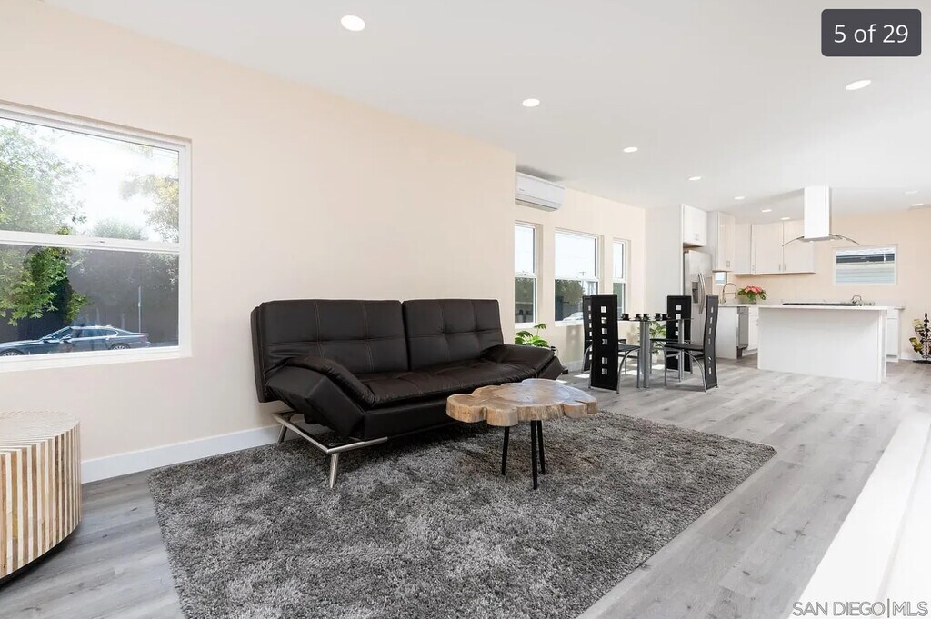Now ready for move in - JUST REMODELED, 1 year minimum lease, rare find in this area - corner house with ONE car garage, close to freeways I-5, I-94, I-15, 163, 75 - Coronado bridge - you can see bridge from your kitchen and dining area windows; barbecue area, porch, deck, tenant pays utilities, small pets are Ok with monthly fee, newly remodeled, mini splits AC, wall heater, all new appliances: refrigerator , stove, oven, dishwasher, washed/dryer available on the premises, new kitchen, remodeled bathrooms, high ceilings, recessed lights throughout the house plus ceiling fans in bedrooms , light up mirrors in both bathrooms, vinyl flooring throughout the house. Walking distance to shops and farmers market. A few minutes away from Coronado and Downtown.