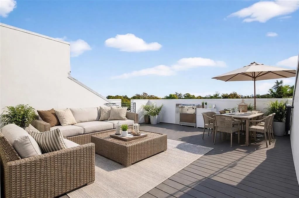 Welcome to 104 26th St N, a sophisticated four-story townhome completed in 2022 that offers contemporary luxury and effortless urban living in one of St. Petersburg's most vibrant locations. Built with solid block construction and situated in a non-flood zone, this exceptional residence combines refined design with peace of mind. Spanning three beautifully designed levels of interior living space and topped with a private rooftop deck, this home is ideal for elevated entertaining and everyday comfort. From the moment you step inside, you're greeted by soaring ceilings, wide-plank luxury LVP flooring, recessed LED lighting, and abundant natural light that create a clean, modern aesthetic throughout. The chef's kitchen serves as the centerpiece of the home, featuring soft-close shaker cabinetry, quartz countertops, and a premium KitchenAid stainless steel appliance suite. A stunning picture window fills the space with sunlight, giving the kitchen an open, airy feel that is perfect for both relaxed mornings and hosting guests. The private living spaces are equally well-appointed, with custom closet systems throughout, designer window treatments, and thoughtful functionality at every turn. Everyday convenience is enhanced with a Samsung washer and dryer, security doorbell system, and smart-home features throughout the residence. The oversized one-car garage offers exceptional storage and functionality, complete with overhead storage, a MyQ smart garage door, and a dedicated EV charging station.