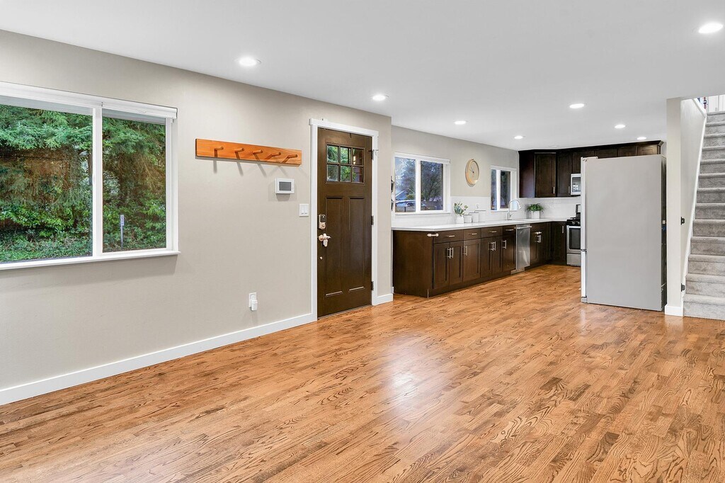 OPEN HOUSE: Wednesday (2/4), from 3:00pm-4:30pm Beautifully remodeled, perfect in-city retreat, with 3BR/2.5BA + Office/Bonus Room on a quiet tree lined street. Comfortable Living and Dining spaces with abundant natural light, fireplace, and gleaming hardwood floors. Modern Kitchen with quartz counters, S/S appliances, gas stove and walk-in pantry. Owner's Suite with private full bath. Additional features include open layout, A/C, oversized Office/Bonus Room, newer bathrooms and windows, laundry room, barn doors, 4-car driveway and more! Fenced, serene, yard with grassy lawn area, shed, patio furniture, firepit, and deck -- perfect for BBQ's, relaxing, or friendly gatherings. Great schools! Close to retail, market, library, cafes, 220 acre Carkeek Park with trails and beach access, public transit, I-5 freeway and quick commute to Amazon, Microsoft, Meta and DT Seattle/Bellevue. Pets considered. Come see this wonderful house! Terms: First month + security deposit equal to one month's rent + $500 pet deposit (if applicable). Pets are case-by-case. No smoking. Renter's insurance required.