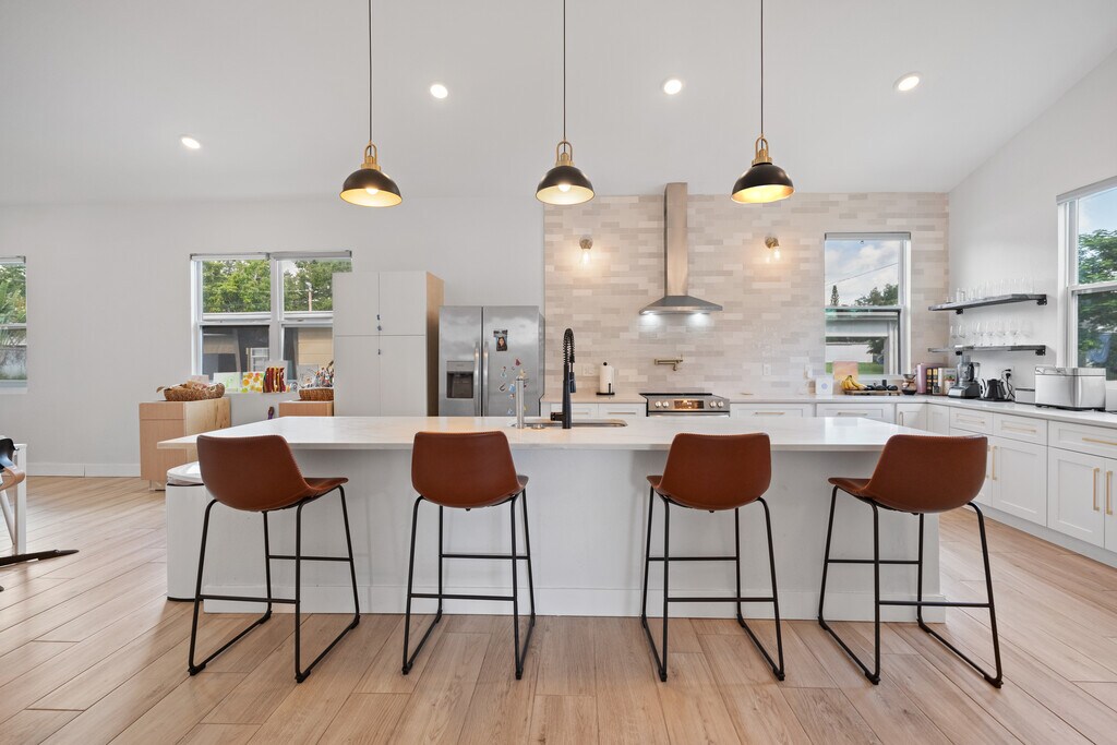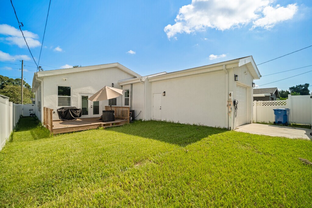 Available starting Sept 11, 2025! More pictures coming soon. Welcome to your 2024 constructed dream home in the highly desired neighborhood of Ravenswood in the heart of St Pete. Upon entering you will be wowed by the huge open concept kitchen/dining/living room with vaulted ceiling reaching 13 ft in height, perfect for entertaining. The kitchen is a chef's dream with a massive island, quartz countertops, white shaker cabinets, wine fridge and a hot water pot filler above the stove. Ceramic tiles flow beautifully throughout the house with a modern wood look. The home comes with an indoor laundry room equipped with brand new washer & dryer. Enjoy private cookouts on the back deck with a fully fenced in backyard. The 1 car attached garage is off the rear of the house with a private back alley to access where your trash and recyclables are collected regularly by the city of St Pete. Street parking is allowed in this neighborhood as well. This home is not in a flood zone so have peace of mind knowing you're safe from floods. This home is perfectly located close to highway access, 4th street & just a short 10 minute drive to downtown. Schedule a showing today before it's too late!