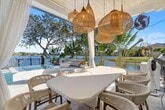 Experience true waterfront living in this professionally designed and fully furnished luxury home offering 3,344 sq. ft. with 5 bedrooms and 3 bathrooms. Every space has been carefully curated by a professional interior designer, with custom furnishings, thoughtful finishes, and a level of detail that makes the home feel both elegant and comfortable from the moment you walk in. The open-concept layout centers around a modern chef's kitchen with premium appliances, custom cabinetry, and a seamless flow into the main living and dining areas—perfect for both everyday living and entertaining. Large windows throughout the home frame peaceful water views and bring in beautiful natural light. The primary suite is a true retreat, featuring tranquil lake views and a spa-inspired en-suite bathroom designed for relaxation. Step outside and the home truly sets itself apart. The backyard alone features over $200,000 in upgrades, designed as a private Mediterranean-inspired resort. The pool and spa overlook the lake, surrounded by a beautifully finished patio that creates a setting reminiscent of a luxury villa in Greece. It's the perfect place to enjoy breathtaking sunsets, entertain guests, or simply unwind in complete privacy. This home is fully furnished and completely move-in ready, with every detail thoughtfully designed and executed to create a cohesive, high-end living experience.