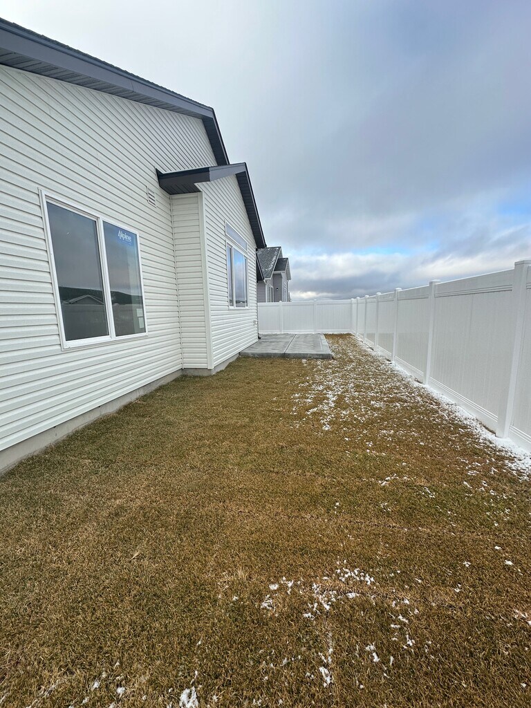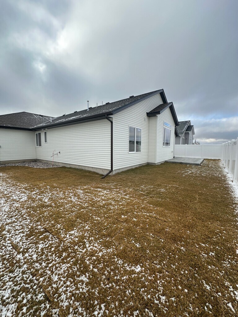 Beautiful Move -in ready new construction 4 bedroom, 2 bath open concept home all on one level. This home is detailed from top to bottom. Custom hickory wood tone kitchen cabinets, with white quartz counter tops, upgraded appliances including gas stove with over the range microwave and side by side refrigerator with icemaker. Warm rich tones throughout with luxury vinyl and carpet in bedrooms. Gas heat, a/c, washer/dryer hookups, water softener, automatic sprinklers, fenced yard, 3 car garage and more. $2400.00 per month, $1150.00 security deposit OAC. Nonsmoking property, dog friendly up to three dogs with pet references.
