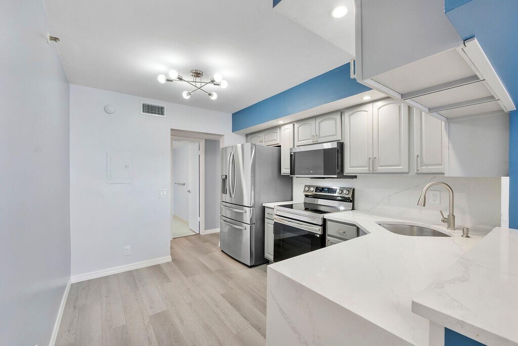 Convenient ground floor, substantially upgraded unit in secure, pet friendly bldg, with forever views over 168 acre lake. New kitchen & baths with SS appliances and quartz counters, New Samsung W & D. Flat ceiling (no popcorn), laminate & tile flooring. Freshly painted. Virtually a brand new apt. Rent includes X1 cable with DVR service and high speed internet. All this in a centrally located resort style complex offering 3 pools & hot tubs, M/F sauna, gym, Tennis/Pickleball, Basketball, Library, Picnic areas with grills and numerous water sports allowed on the pristine lake. Beaches, Downtown Las Olas, Wilton Dr & Airport all within 15 minute drive. 3120