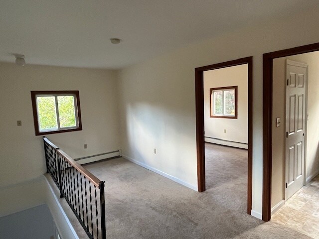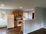 Newly renovated one bedroom apartment, on two levels with 2 bathrooms. Spacious apartment with open floor plan kitchen and living area, with second level bedroom and lofted area perfect for studio or office. The unit is located in a well maintained four unit building in a quiet rural setting with yard space and convenient parking. Water, sewer, trash removal and lawn care included in rent. Tenant pays for propane and electric.