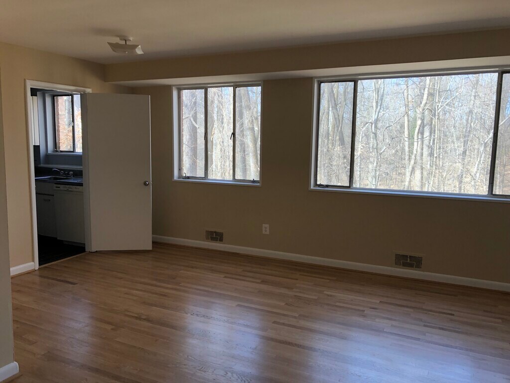 Bright and quiet, unfurnished one bedroom Parkside Condo with beautiful wooded views. Available for rent February 4. Just a 5 min. walk to the Grosvenor-Strathmore metro (Red Line). Off-street parking right next to the building. Hardwood floors. Central Air. All utilities included except WIFI and cable. Laundry facilities downstairs. Easy access to I-495, I-270, and nearby biking and hiking trails. Walking distance to Strathmore Music Center. Community amenities include a swimming pool, tennis courts, and clubhouse. No pets. No smoking.