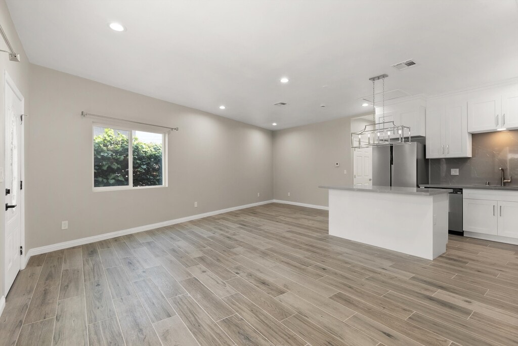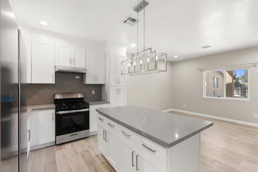 Newly constructed in 2025 ADU with separate entrance and yard! * Two large bedrooms and two full baths * Primary suite with own bath * Beautiful quartz countertops and white shaker cabinets in kitchen * Spacious kitchen with island and chandelier * Stainless steel appliances include fridge, dishwasher, range and hood * Central heating and air conditioning * Washer and dryer included * Wood look tile throughout the home for easy maintenance * Near the many restaurants and shops of Downey Landing and Stonewood Center * Close to 5, 605 and 105 freeways for easy access