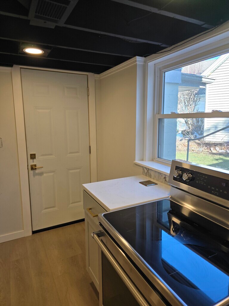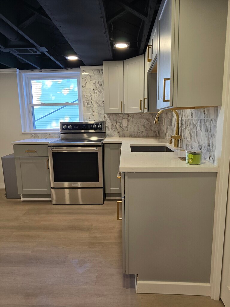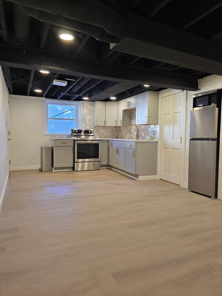 Recently remodeled basement unit featuring a private bedroom, full bathroom, full kitchen, and comfortable living room. The space offers a modern and functional layout with a private garage included. Shared laundry facilities are available on site. Ideal for long-term stays, professionals, or guests looking for a clean, updated, and comfortable living space.