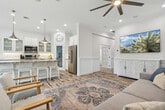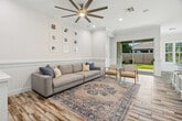 RARE OPPORTUNITY! Welcome to this stunning MODEL home in the charming Mulberry community. This 1704 sqft gem offers 3 bedrooms, 2 baths, LOADED with upgrades and gorgeous curb appeal with a brick-paved driveway, synthetic grass, and a quaint porch with white railing. Be greeted by white shutters throughout, wood-look plank tile flooring, crown molding, wainscoting walls, can lighting, and surround sound inside and out. The great room and kitchen boast: - Granite countertops - 42-inch white staggered cabinets with rain glass and silver pulls - Large kitchen island with breakfast bar - Farmhouse apron sink - Pendant lighting - KitchenAid stainless steel appliances - 5-burner gas stove - Built-in microwave - Under-counter lighting - Walk-in pantry with frosted glass - Dining nook Luxurious Owner's Suite features: - Crown molding - Shutters - Ceiling fan - Soaking garden tub with separate walk-in shower - Double sinks and makeup vanity - Linen closet - Large walk-in closet Bedroom 2 - Glass french doors - Features shutters - Large closet - Upgraded carpet Bedroom 3 - Conveniently located at the front - Shutters - Walk-in closet - Upgraded carpet - Custom wallpaper Immaculate Entertainer's Backyard - Covered patio with travertine flooring - Synthetic grass - Cozy built-in gas fireplace - 7-seat relaxing spa. - Built-in brick grill Top-Notch Amenities and Features - AquaSana whole house water filtration system for the cleanest water - Security system with cameras - Community pools, workout facility, tennis courts, pickle ball courts, biking and walking paths, and playgrounds Don't miss out on this exceptional opportunity to live in luxury and comfort! Contact us today for a viewing! - Flexible lease start date: End of February or March 1st - Security deposit: 1x-1.5x the rent (depends on application) - Minimum lease term: 1 year - HOA covered by owner - Not Furnished - Pets allowed (dependent on breed) for $50/month each pet