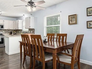 Pristine two story. The eat in kitchen features white cabinets, newer hardware and stainless steel appliances. Large living room with a fireplace. The main floor has new LVP flooring. Fresh paint throughout the home. Four bedrooms and two and a half bathrooms. Newer air conditioner, carpet and windows. Sellers added overhead fans and lighting in the bedrooms and additional attic insulation. Enjoy the large patio. New privacy fencing in the backyard. There is plenty of useable space and storage in the basement.