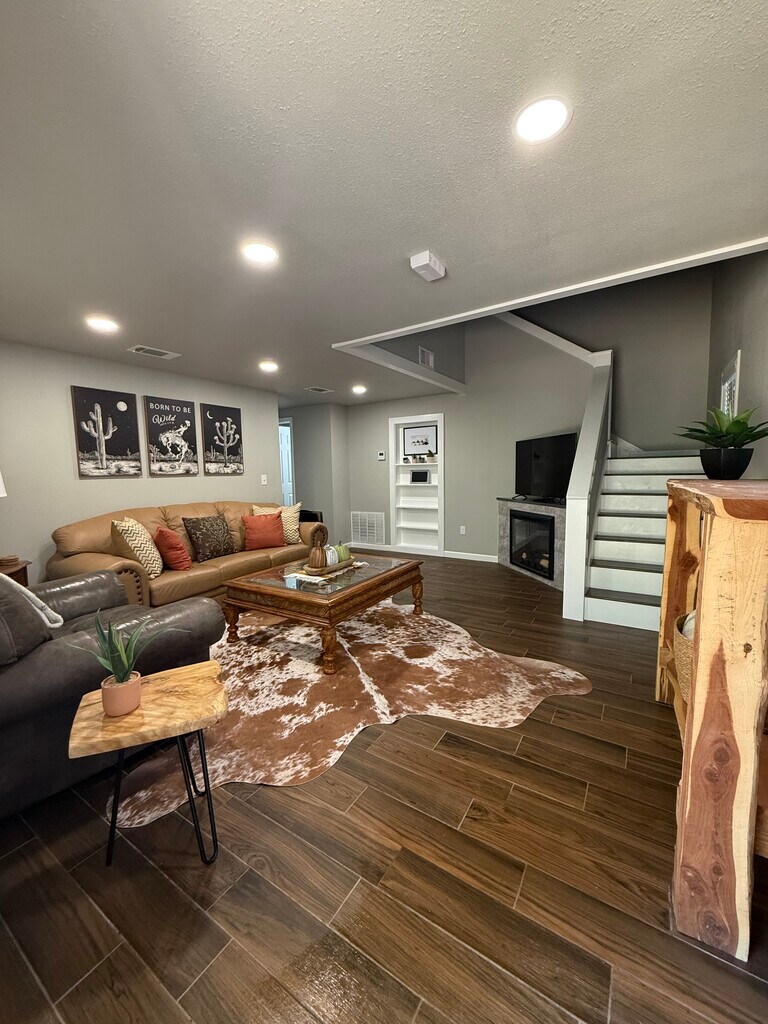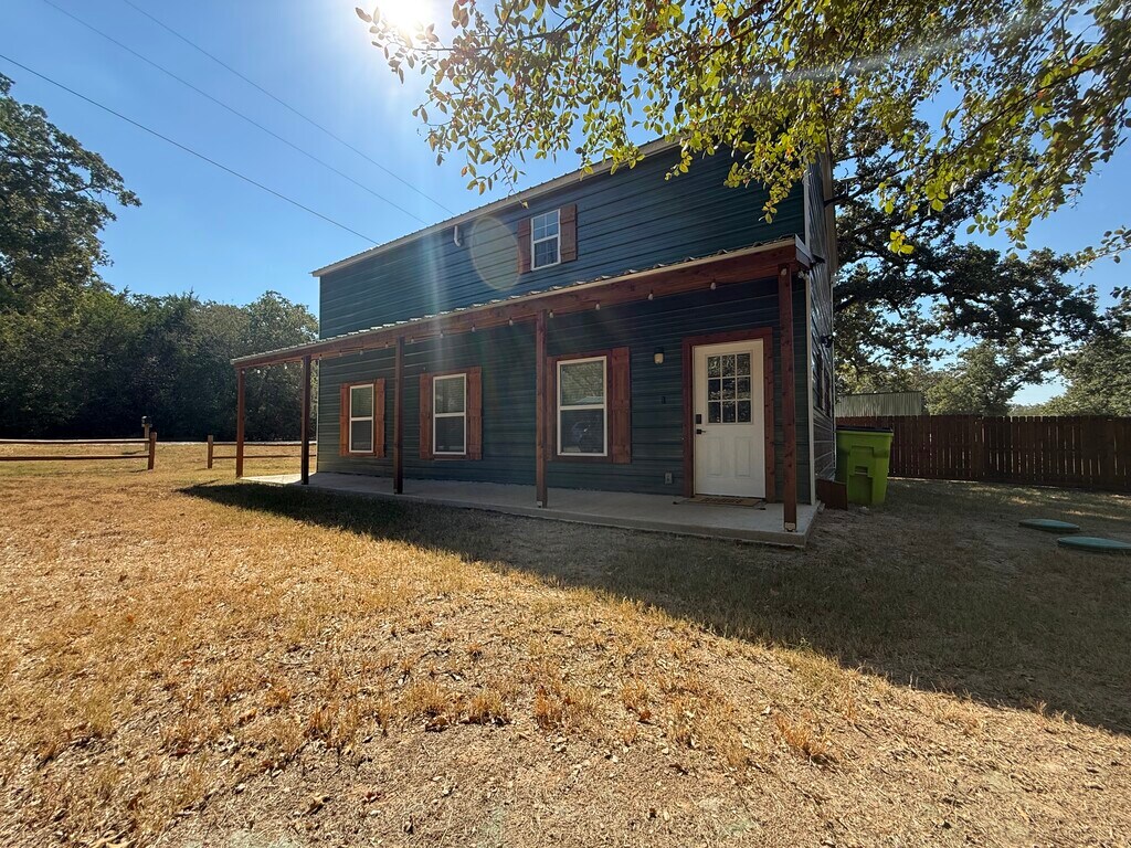 Fully Updated. Beautiful 3bed/2 bath FULLY FURNISHED 2 story home. Minutes from north shore, Lake Bastrop. This property combines peace of mind with smart upgrades. All new electrical, plumbing, HVAC, and water heater—everything’s been taken care of. Upstairs fully remodeled. Downstairs brand new. Durable metal roof and siding offer added fire protection and long-term durability. The detached shop already has electric, water, and sewer. Additional features include: camera Ring security system (Tenant would need to get it up and running in your name); Starlink internet included in monthly rent; Outdoor sitting area with fire pit Abundant wildlife and privacy Close to Lake Bastrop for fishing, boating, and trails.
