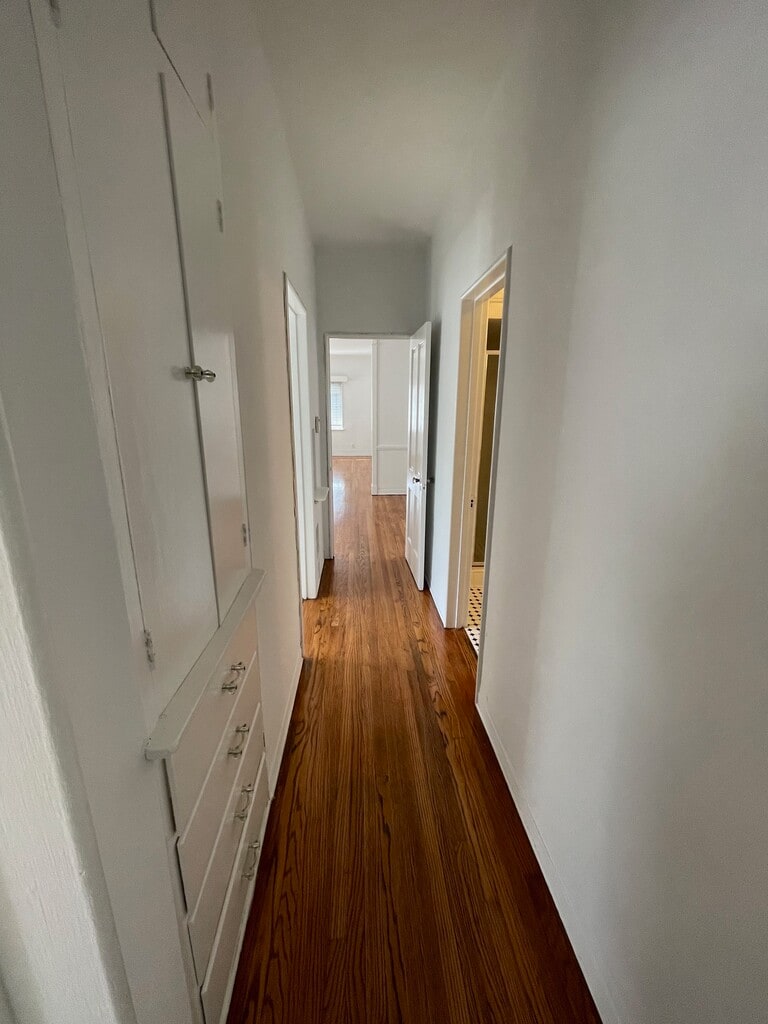 NO PETS EV charging on site 1 BED/1 BA Large unit approx. 1000 sq.ft. Crown moulding and wainscoting wood blinds Fireplace Air conditioned Hardwood floors Lots of storage- 2 walk in closets, floor to ceiling linen closet, pantry closet Kitchen-stove, refrigerator, dishwasher, pot rack Bathroom- Shower and separate bathtub Service porch with launddry hook ups and lots of storage Laundry on premises Small shared outdoor garden Garage for one car with remote opener 1 year lease $2550 per month $2550 security deposit $45 per occupant application fee