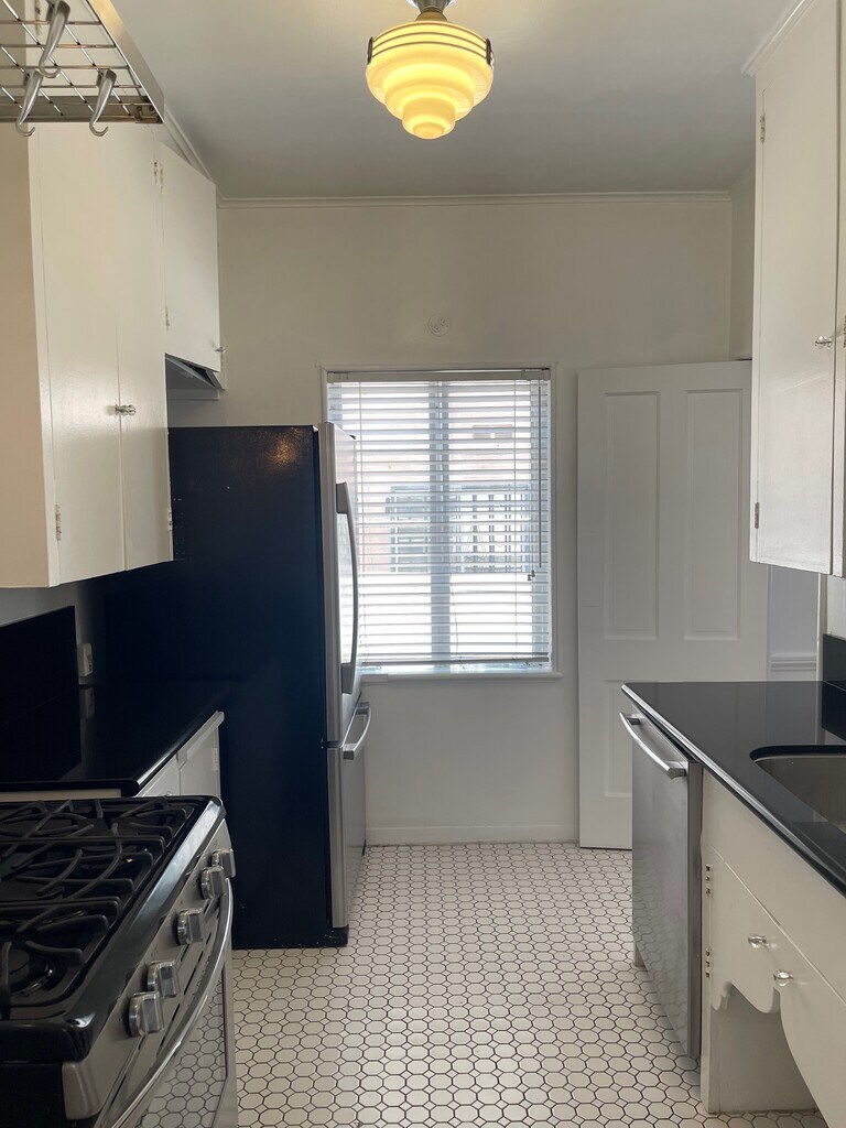 NO PETS EV charging on site 1 BED/1 BA Large unit approx. 1000 sq.ft. Crown moulding and wainscoting wood blinds Fireplace Air conditioned Hardwood floors Lots of storage- 2 walk in closets, floor to ceiling linen closet, pantry closet Kitchen- granite counters, new stove, refrigerator, dishwasher, pot rack, tile flooring Bathroom- Shower and separate bathtub Service porch with launddry hook ups and lots of storage Laundry on premises Small shared outdoor garden Garage for one car with remote opener 1 year lease $2550 per month $2550 security deposit $45 per occupant application fee