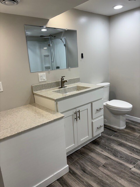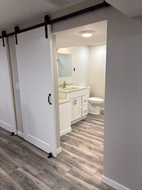 Gorgeous walkout basement apartment, with laundry room, 800 sq. ft. One bedroom, one Bath, open concept Kitchen with high quality finishes. Barn doors, natural lighting, patio and private entrance. Rent is $995.00/ month, plus half utilities, approx. $165.00/ mo. Nice off street parking! Located in quiet family neighborhood. Non smoking/non vaping residence and no pets. $1000.00 deposit due at signing. Special promotion going on, first month rent at $500.00 if signing a 13 month lease. Background check is required and approved before signing of lease. Very eager to rent to a professional adult.