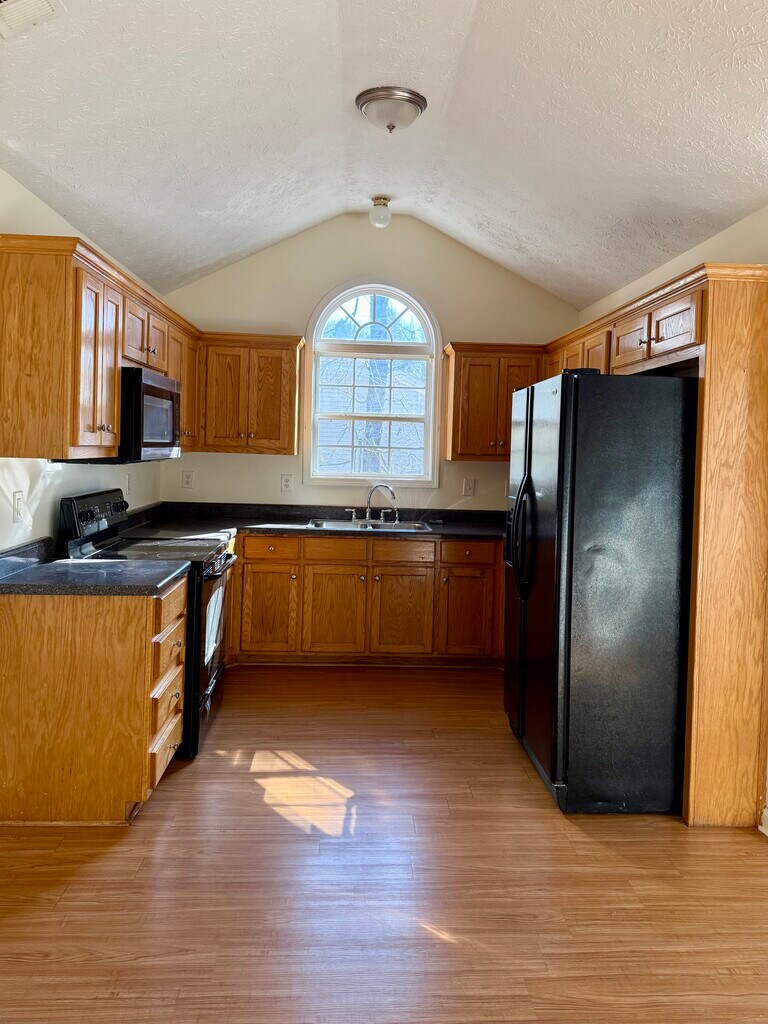 Stunning 1,778 sq ft home in peaceful cul-de-sac LEASE-PURCHASE — Path to Homeownership 4 Bed / 3 Bath + Bonus Room | Cul-de-sac | Forest Views $2,150/month with a downpayment $5,000 option payment (downpayment) goes towards the house. Interior: Hardwood floors throughout. Vaulted ceilings. Fresh paint. Beautiful cabinets, stove and refrigerator included. Laundry hookups ready. Master Suite: Large master bedroom. Garden tub and separate shower. Walk-in closet with generous storage. Layout: Upstairs — 3 bedrooms, 2 full bathrooms. Downstairs — 1 bedroom, bonus room, full bathroom. Outdoor Living: Deck off living room with stunning forest views. 2-car Call to discuss lease-purchase details.