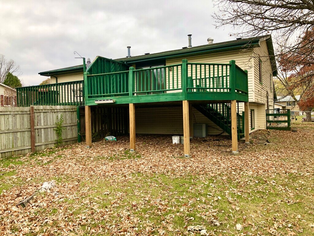 PLEASE DO NOT SUBMIT AN APPLICATION WITHOUT FIRST CHECKING ON THE STATUS OF THE RENTAL. NOT LISTED ON CRAIGSLIST. This home has two living areas with a bedroom and bathroom on each floor. Each bedroom has a large walk-in closet. The large fenced yard provides many options for outdoor activities. Newer appliances and fresh paint throughout. Dining area walks out to large deck. Two car garage with a bonus shed for extra storage. Rent includes lawn care and basic trash service. Max occupancy of 4 persons. Parking for 2 vehicles included. $50/month per each additional vehicles, up to a maximum of 2. Tenant Responsibilities: -Heat -Electric -Internet, Cable, Satellite -Lawn, Snow -Water (billed quarterly) Renter Requirements: -Monthly Gross income 3 times rent -Low Debt-to-income ratio -No violent crime convictions within last 10 years -No unlawful detainer within last 5 years -Credit score of 675 or better -2 references required