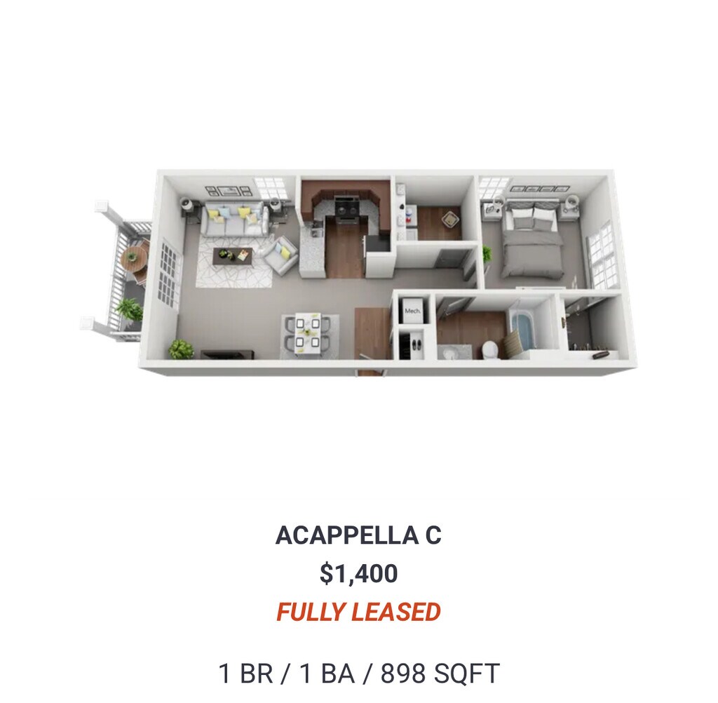 107 Presido Ln, Unit 301 offers 1 Bedroom apartments starting from $1,400 and having 898 sq ft. Here is the current pricing and availability: