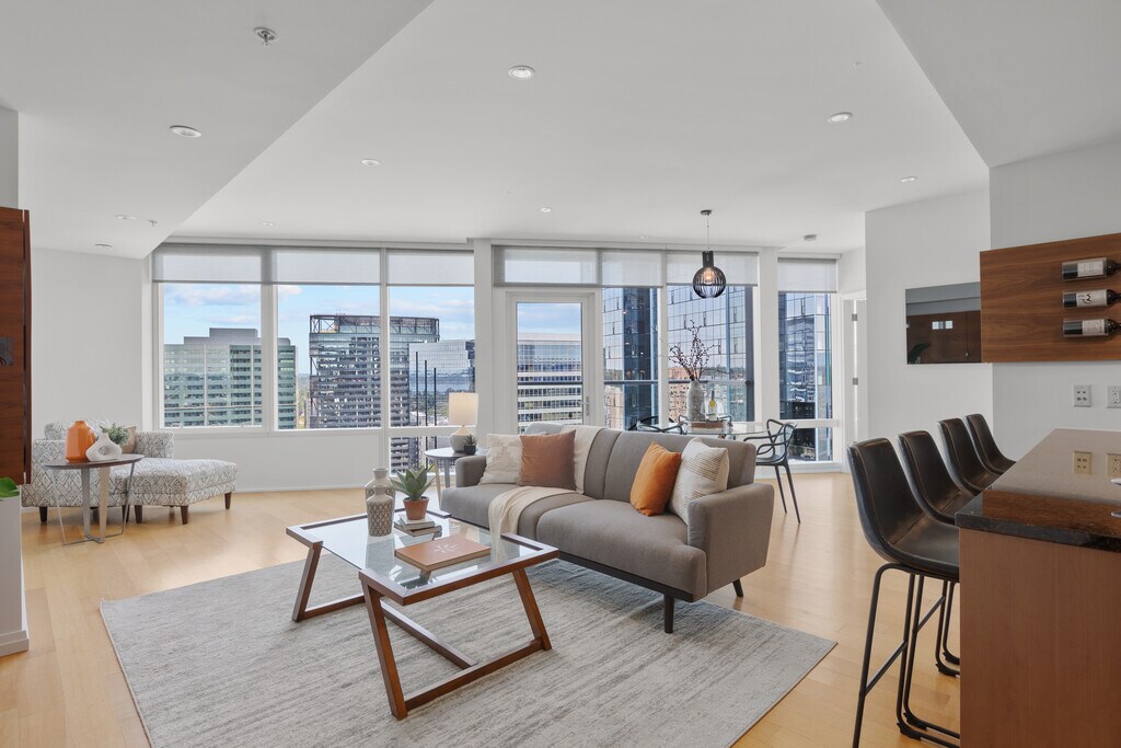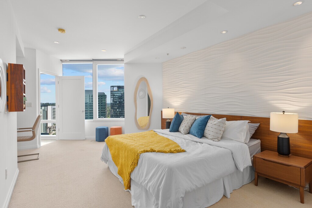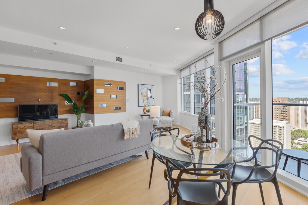 Luxury 1 bed/1.5 bath, 1272 sq ft unit on the 31st floor of the coveted Bellevue Towers. Open floor plan, hardwoods, balcony & wall of windows. Kitchen with granite counters, Sub-Zero refrigerator, Viking range, oversized island with eating bar. Master suite with walk-in closet and office space. Building amenities include concierge service, fitness center, luxury spa, guest suites, movie theater, 3 outdoor terraces and a private half-acre park. A walker's paradise - walking distance to all shops and restaurants in Downtown Bellevue! Comes with one parking spot and your own storage unit. Utilities covered: water/trash. Date Available: November 17, 2025. Security Deposit Required. Pet Friendly!