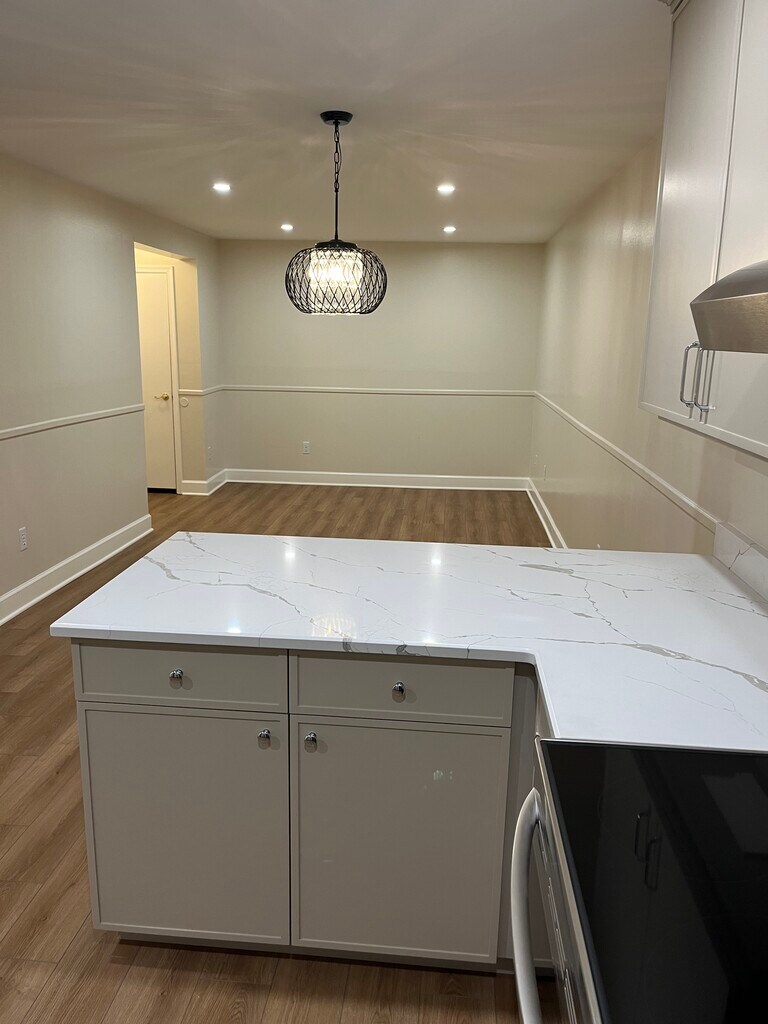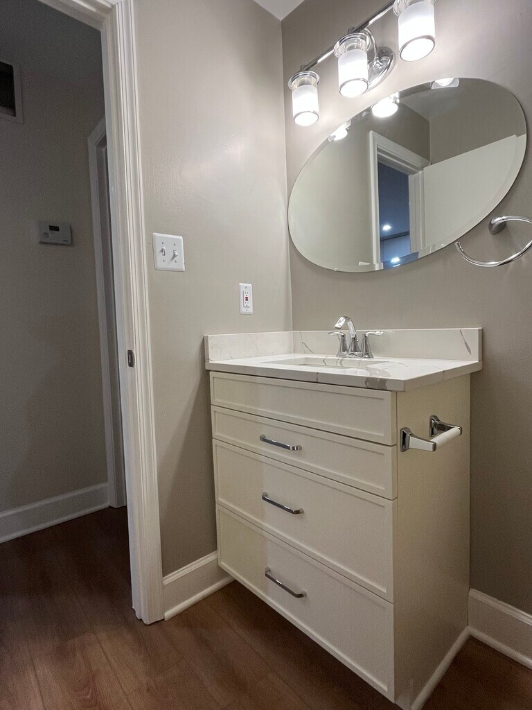 1 bedroom basement-level apartment in desirable Tuckerman Station neighborhood. Very private location with washer and dryer in unit. *Brand-new hardwood flooring and fresh paint throughout! *Brand-new kitchen cabinets with tons of storage space! *Brand-new quartz countertops in the kitchen and bathroom! *Brand-new hot water heater, a/c, and furnace! *Stainless steel appliances including brand new oven *Recessed lighting in kitchen & family room *Large master bedroom with double closets Total apartment is 705 sq ft. Just a 10-minute walk to Grosvenor Metro. Close to NIH, Walter Reed National Military Medical Center, Montgomery Mall, Pike & Rose, Wildwood Shopping Center, 270, 495, and literally steps to the Bethesda Trolley Trail. Perks include swimming pool, tennis courts, EV charging stations, and a dedicated parking spot right in front of the building. Water is included so you only need to pay electricity. No pets Credit check and references required. Minimum 1 year lease. One month's security deposit required.