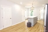 Spacious duplex apartment offering nearly 1,900 square feet of living space, located on the second and third floors, featuring three bedrooms plus a bonus room in a bright, penthouse-style layout. This oversized unit lives more like a townhouse than a traditional apartment, with multi-level living, large rooms, and abundant natural light throughout. Enter through a private foyer with its own entrance leading to the main level, where you will find an open-concept living room and modern kitchen featuring gray shaker cabinets, white quartz countertops, stainless steel appliances, and two pantry closets giving you plenty of storage space. A convenient in-unit washer and dryer are also located on this level, and modern oak-tone LVP flooring runs throughout the entire home, giving the space a clean and updated feel. The second floor also includes a fully renovated full bathroom with subway tile and modern fixtures, along with a bonus room that can be used as a home office, nursery, guest room, or additional flex space. Toward the rear of this level there is a dedicated staircase that leads directly to the shared backyard, where you will also find the second full bathroom located near the rear exit for added convenience. A spiral staircase leads to the third floor, which offers three bedrooms, including two very large bedrooms with generous closet space and great natural light, creating a comfortable and spacious upper level. This unit also includes a private driveway with parking for one car, along with plenty of street parking available at all times. The layout, size, and multi-level design make this home ideal for anyone needing extra space, working from home, or sharing with others. Located just steps from the Rahway train station, and minutes to major highways, shopping, restaurants, and everyday conveniences, this is an excellent option for commuters while still offering a large living space rarely found in rental units. Vacant and ready for immediate occupancy, priced to rent quickly. Schedule your showing today.