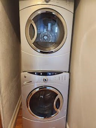 Pondside condo duplex for rent with off street parking.. Perfectly and conveniently located on Perkins Street, with Jamaica Pond right at the corner. A few minutes from Longwood Medical Area, VA Hospital, Brookline Village, Emerald Necklace, Whole Foods on Centre St and close the JP nice shops, cafes and restaurants. This 2 bed/1 bath duplex features two levels of living area, with 2 bedrooms in the upper level. The master bedroom has wall AC. Full bathroom in this level between the bedrooms and in-unit washer/dryer.. Living room in the lower level leads to the updated kitchen. There is also a storage closet. The kitchen has granite counters, stainless appliances, gas stove and dishwasher. Heating is gas ( not included in the rent). Tenants pay for their own utilities. One cat or a small/medium sized dog allowed. Very close to the Green Line on South Huntington. Available now.