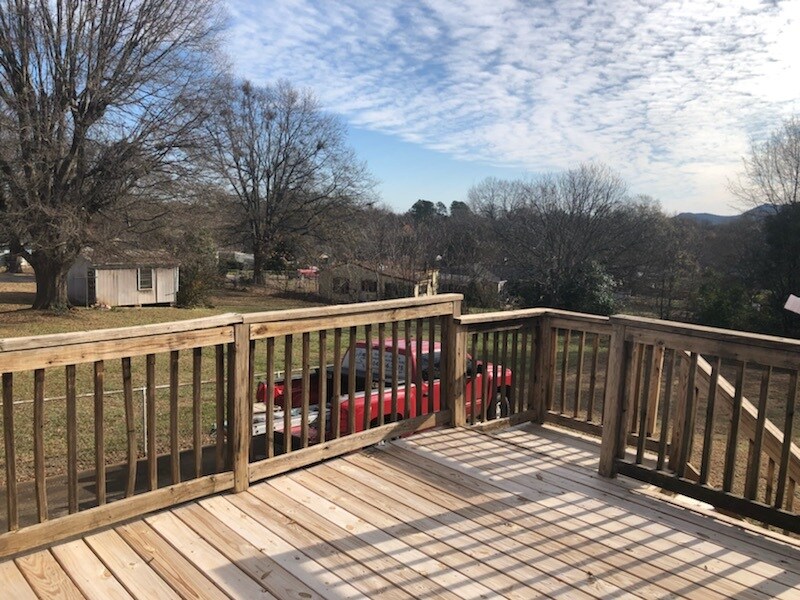 A lovely 3 beds and 1 bath in the main house brick home with a cabin look interior. Refinished hard wood floors throughout the bedrooms and & 1 large, remodeled suite separated from the main home with full bathroom and shower and has its own heating and air unit, on 0.70 acres. NO SMOKING ALLOWED.!!!!!!!! ! Enjoy the mountain view and privacy from your own deck! Quiet neighborhood, spacious backyard, 6-car concrete driveway, unfinished basement for hobby room or workshop, covered front porch and just less than 5 minutes from highway 74/interstate 85 and less than 30 minutes from the Charlotte airport! Stainless steel refrigerator and a gas washer/dryer included. All for $2000