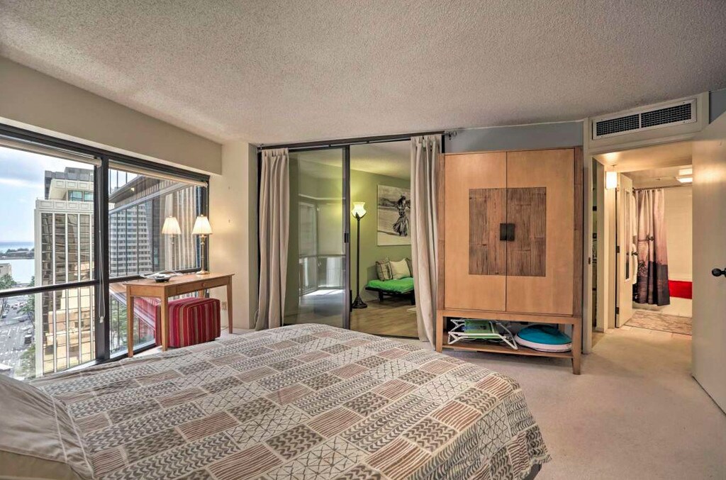 The Property: Bedroom: Queen Bed Located in downtown Honolulu's only hotel, take advantage of the great amenities like laundry facilities, jet spa, an in-ground pool, and an outdoor shower! When you don't feel like cooking, dine at Executive Centre's own restaurant or Starbucks or at the many celebrated locations just steps away! Inside the suite, you'll find a welcoming living room complete with a flat-screen TV, a sleeper sofa, and a dining area perfect for 2! Whip up easy meals in the well-equipped kitchenette before kicking back and relaxing. The bedroom is situated on the corner and boasts wall-to-wall windows offering views of downtown and the ocean in the close distance. The room features a queen bed and a large wardrobe to store your belongings. THE LOCATION Located in the heart of downtown Honolulu, you're just steps away from fine dining and shopping. Find the celebrated Senia, O'Kims as well as many take-out and plate lunch selections. Find everything from Sushi to Italian, Thai to Mexican, or Doner to Burgers! Explore the Arts District, 1 block away; Chinatown, 2 blocks away; and the historic Hawaii Theater! SALT at Our Kaka'ako and Queens Medical Center are within walking distance. AMENITIES - Pool - Jacuzzi - Club Room - Community Laundry Room - Central Air Conditioning - 24/7 Security - 24/7 Emergency Maintenance LEASE TERM - 6 month minimum - Application Processing Fee: $40.00 - Security Deposit: equivalent to monthly rate - Utilities Included: Water, Sewer, Garbage, Cable, Internet, Electricity