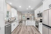 Enjoy Cape Carteret comfort in this completely updated main-level-living home. 3 bedrooms, 2.5 baths, spacious bonus room, 2 car garage, large shed/workshop, fenced yard and breezy screened porch. Fully remodeled interior including new kitchen cabinets and countertops, bath cabinets and countertops, tile shower, tile flooring, carpet, paint, fixtures, tub, toilets, lighting and a new 50 gallon water heater. Living room features a gas log fireplace with vaulted ceiling. The primary suite is on the main floor with a beautifully tiled 5 piece en suite bathroom with soaking tub and walk-in closet. Upstairs are two bedrooms, one with a walk-in closet, and a two-sink bathroom with new tile and countertops. Plus, an extra-large bonus room perfect for a rec room, office, home gym, guests, etc. Enjoy coastal living minutes from the beaches of Emerald Isle.
