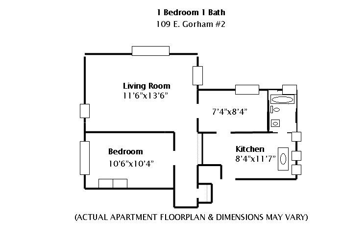 Apartment Unit: 1Apartment Model: 1 - 109 E Gorham St$1,4251 Bedroom, 1 Bath, 500 sq ftAvailable August 15, 2027![]()