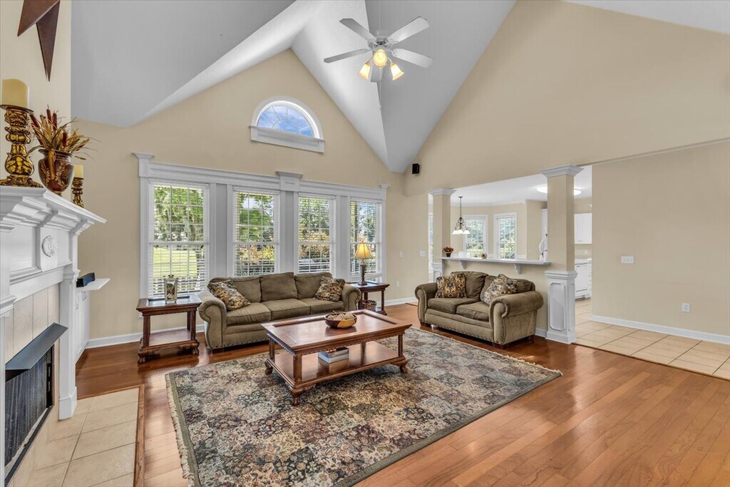 Welcome to this well-maintained 4-bed, 2-bath Southbridge Beauty! Nestled in an amenity-packed community, this all-brick beauty offers stunning golf course views right from your backyard! Step inside to warm real wood flooring that flows throughout the main living areas, creating a cozy and elegant atmosphere. The spacious kitchen features a breakfast bar ideal for casual meals & entertainment, while the formal dining rm adds a touch of sophistication for special gatherings. Unwind in the expansive owner’s suite, boasting a luxurious whirlpool tub, separate shower, & dual vanities for your comfort & convenience. The home offers 2 additional bedrooms on the main flr w/ the spacious 4th bedroom above the garage that could be a home office, bonus rm or playroom. Don’t miss your chance to own this well-cared-for home w/ timeless charm & modern comforts w/ Golf Course living at your doorstep! The community offers a clubhouse, swimming pools, tennis courts, playgrounds & a fitness facility.