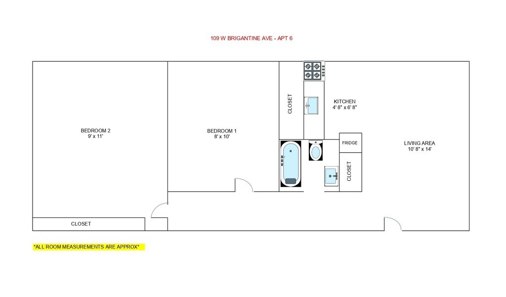 Apartment Unit: 6Apartment Model: 6 - 109 W Brigantine Ave$1,5952 Bedroom, 1 Bath, 442 sq ftAvailable February 1, 2026![]()