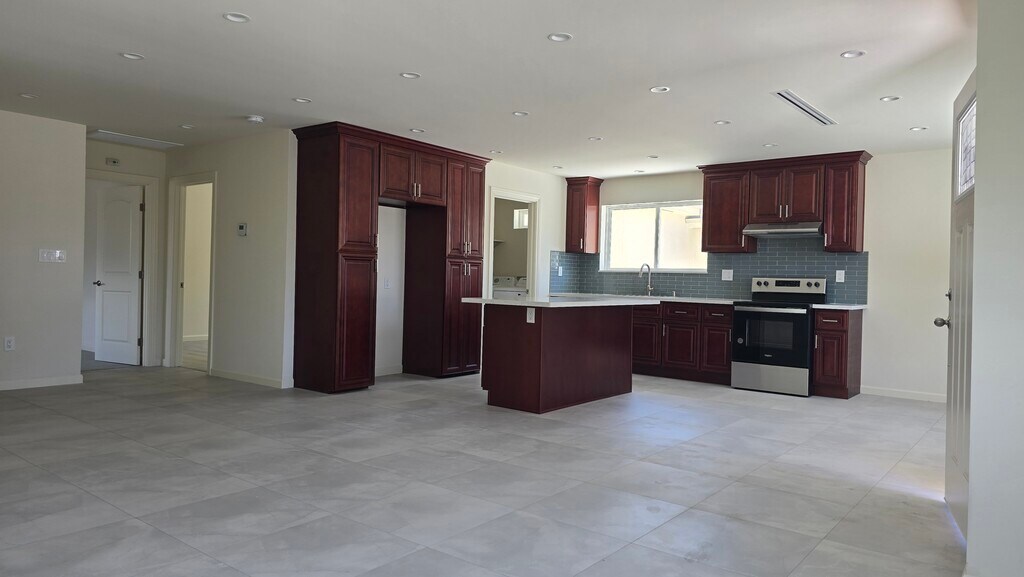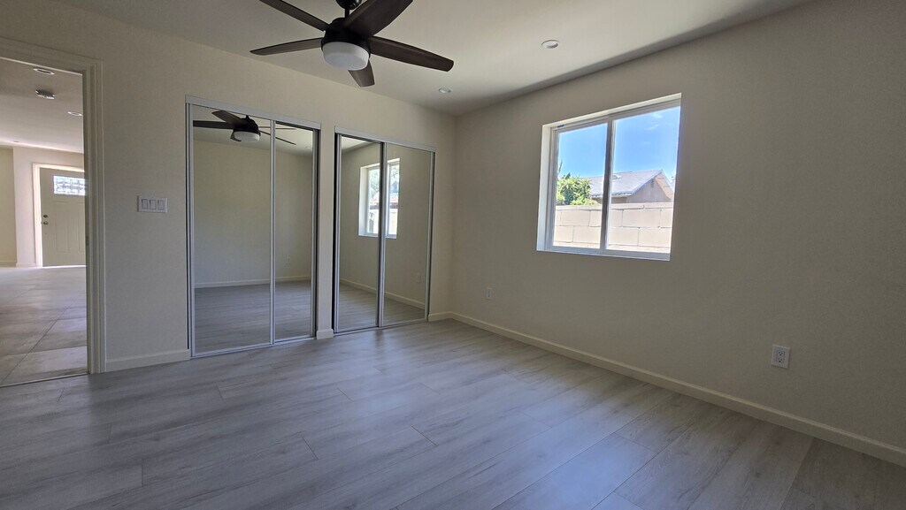 It is 2 Bedroom 2-1/2 bathroom back house with Soler, front of Tulsa elementary school; 2 car space. ALL appliances are electrical, water pays by owner. storage available.