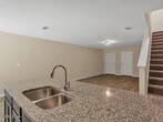 The home features durable, wood-look vinyl flooring throughout. Kitchen includes black fridge and range oven. Nice neighborhood.