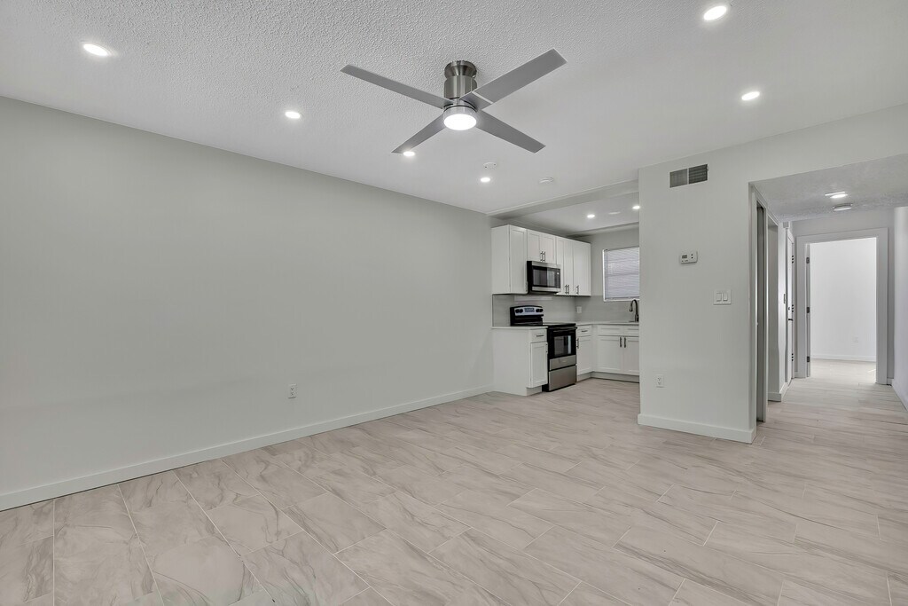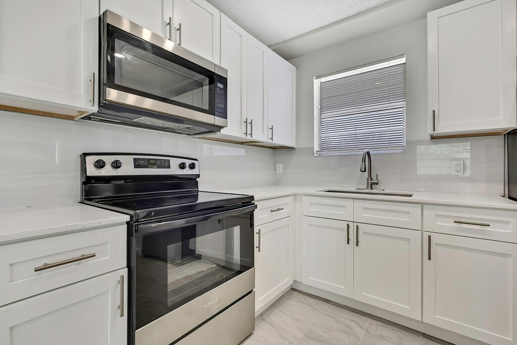 Beautifully renovated 1 bedroom / 1 bathroom apartment featuring a modern open layout and stylish finishes throughout. Everything is brand new, including kitchen cabinets, countertops, stainless steel appliances, flooring, bathroom fixtures, and lighting. The unit offers an updated kitchen with ample storage, a sleek bathroom, and the convenience of in-unit laundry. Freshly painted with a bright, contemporary feel and designed for comfortable living. Move-in ready and perfect for anyone seeking a modern, low-maintenance home.