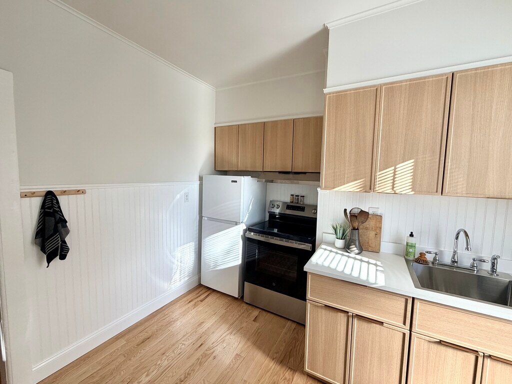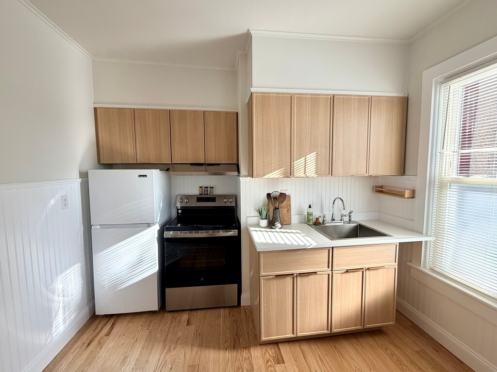 Charming First-Floor 1-Bedroom | Heat Included Sweet and cozy first-floor 1-bedroom with heat included, located in a convenient walkable downtown area. This modestly sized apartment features brand-new hardwood floors, new cabinets, new stove, fresh paint, and updated bathroom fixtures, plus high ceilings that make the space feel bright and open. Off-street parking included. This is a simple, comfortable, well-maintained apartment — ideal for someone who appreciates a clean, thoughtfully updated space in a practical location. (Please note: the building exterior shows some age and has zero charm, but the apartment itself has been fully redone inside.) No laundry on site (laundromat 2 blocks away). Online rent payments available. Responsive, local property manager. Pets: 1–2 cats welcome with pet deposit and pet rent. Cats only — please do not inquire about dogs. Move-in requirements: • One month’s rent security deposit • Income 3× rent • 650+ credit score • Clean background check • Positive employment and housing references and great communication skills • Application via Apartments com (request link) Send an inquiry and we’ll email additional details.