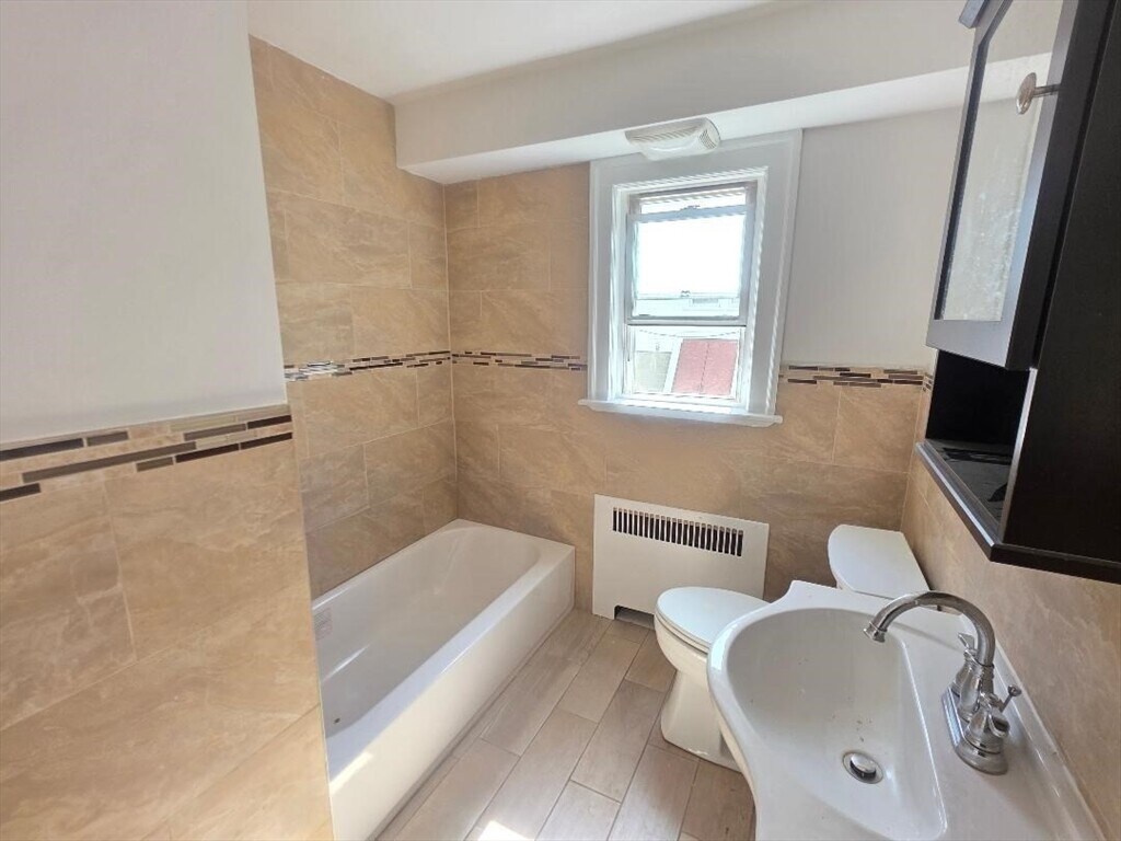 Bright 2 bedroom, 1 bath on 2/F level. Updated kitchen, hardwood floors with custom tile bathroom, coin operated washer/dryer, extra storage room in basement, located on a quiet side street in a 4 unit building, very close to Wollaston Train Station, highway access, parks, beaches, supermarket, restaurants and everything. Tenants require good credit and references. Pet friendly.