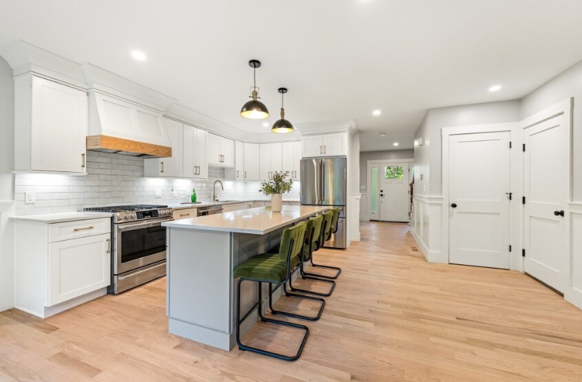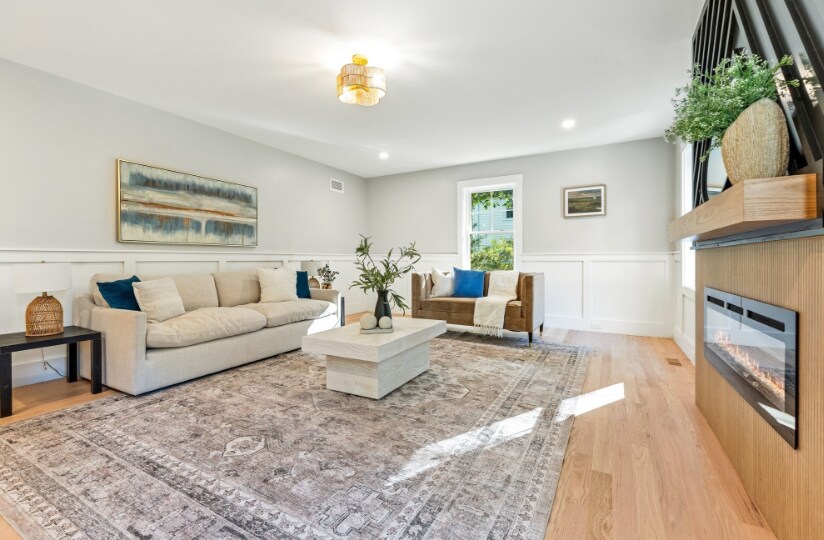 Offering 4 spacious bedrooms, 2.5 baths, and a 2-car garage, it sits on a large lot close to major routes and Bedford’s conveniences. A welcoming covered front porch with sidelites opens to an inviting foyer and open-concept layout. The kitchen features GE Café appliances, quartz counters, a large island flowing to a dining area with slider to a 16x16 Trex deck. The expansive living room centers around a custom tile fireplace and offers views of the peaceful, wooded backyard. Upstairs provides four generous bedrooms, including a luxurious primary suite with spa-like bath and walk-in closet, plus second-floor laundry. The finished walkout basement adds flexible space for a game room, gym, or office. Exceptional design, modern finishes, and attention to detail throughout — move right in and enjoy premium Bedford living!