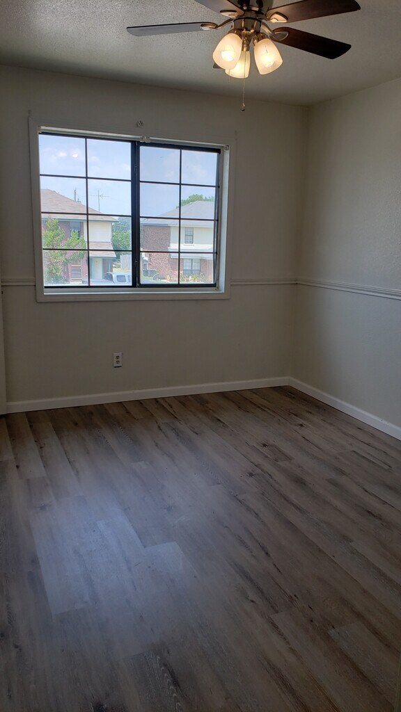 2bedroom and 1.5 baths townhouse style with private backyard~~Large townhouse 2 bedroom, and 1.5 bathrooms offering Pet-Friendly Fenced backyard, plus large additional grassy area in the back. New Floors throughout, New AC & Heat System. Comes with Appliances: dishwasher, stove, refrigerator, Inside Laundry room with Washer & Dryer included, and plenty of countertop and cabinet space. Ceiling fans. The 2 bedrooms are upstairs with 1 full bathroom. The exterior is well-maintained, contributing to the overall appeal of the property. This smoke-free home is ideal for those seeking a comfortable living environment. Very close to HEB store right by Old Fm Rd & Elms Rd, Short drive to Fort Cavazos / Fort Hood, Texas A &M University, Killeen Airport, 14Hwy and more...