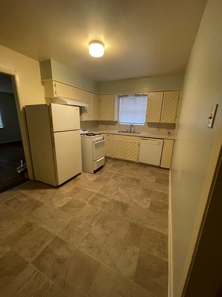 Downstairs unit with vinyl flooring. Equipped with window units and wall heaters. Shared backyard with other residents. NO laundry facilities onsite