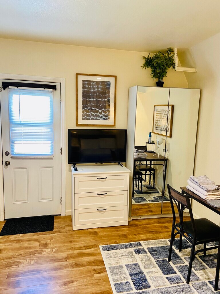 Single occupancy only . Furnished studio with a pool view . Located in a tree lined gorgeous quite neighborhood of Glendale . No apartments with ample street parking ( no tickets ) .Feels like in a suburbs but just minutes away to a bustling down of Glendale and Burbank . Near to Shops, groceries , restaurants , trails and hiking areas .