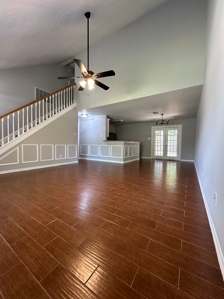 This beautiful, well maintained home is located on a quiet Cul de Sac in the private subdivision of Windsong. The interior features an open layout with high ceilings, neutral paint, wood-look flooring throughout, granite countertops, stainless steel appliances, modern light fixtures, and large bedrooms, all with ceiling fans. Primary bedroom is downstairs and has a spacious walk in closet. French doors off the dining area lead to the large, fully fenced backyard. With no back neighbors, this space offers peace and privacy. Mature trees and a covered patio provide plenty of shade for outdoor entertaining. Close proximity to downtown Conroe. Currently undergoing a few renovations. Expected to be available Dec 1st.