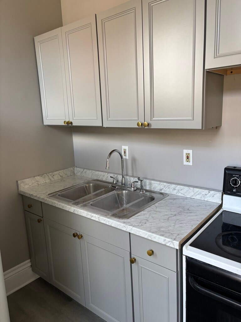 First floor unit with great location. Central air gas force heat. Brand new kitchen. Private back patio. On street parking. Washer and dryer in basement. Brand new windows. One month rent and one month deposit required. One year lease. 1 bed 1 bath