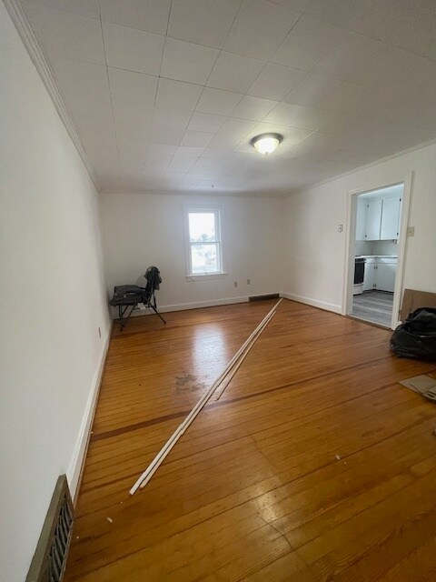 Huge 4 bedroom apartment. Recently renovated. Beautiful hardwood floor throughout. Entire second floor of building. Detached 2 bay garage included and plenty of attic storage space. New gas range and washer/dryer to be installed before move in. Excellent location, plenty of off street parking. Gas heat/water/sewer/trash included in rent. Tenant only need to pay for electric (city of Hagerstown). Nice front porch area (not pictured) and fenced in yard (yard will be shared with tenant on lower level). Pets allowed with monthly pet fee of $35. Rental requirements: No evictions, monthly income of at least 3x rent.