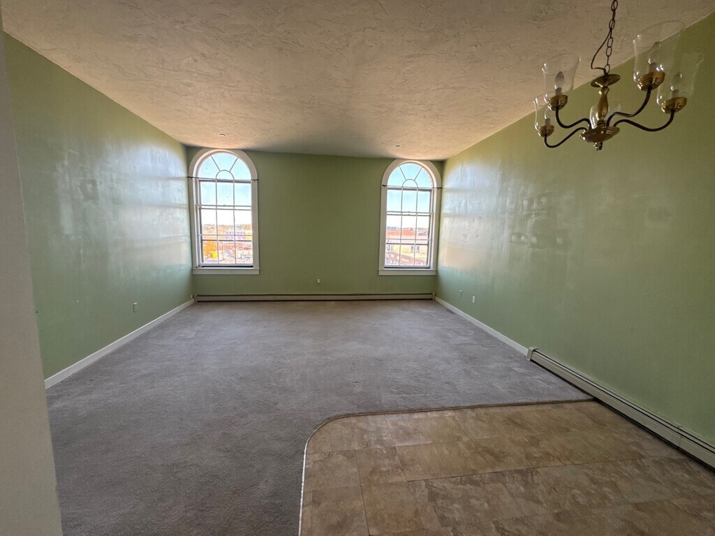This is a big beautiful spacious loft style two bedroom penthouse apartment located right in downtown Middleboro. It is located on the third (top) floor of a big brick commercial building. Enter right into the livingroom with nice big loft style windows that let in plenty of natural light. Soft neutral carpets in the living room and both bedrooms give the apartment a nice comfy feel. A coat closet is located between the living room and kitchen. Kitchen has a full fridge, dishwasher, microwave and electric oven. Bathroom is right off from the kitchen and features a full bathtub and vanity. Master is located in the rear of the apartment and has a big closet for plenty of storage. Second bedroom also features a big closet space. Plenty of off street parking and views of downtown Middleboro. Private tenant only entrance with coin op laundry machines right in the hallway. Tenant pays utilities which is gas heat and electric. First, Last, and Security ($7,500) required with the signing of a 1 year lease. Please email me with any questions. This apartment will not last long!!