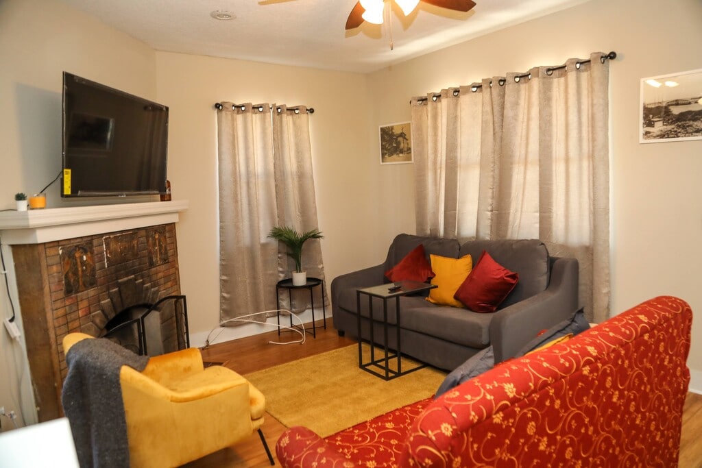 This property can be rented fully furnished if needed. Enjoy a stylish experience at this centrally-located 2 bedroom Craftsman styled bungalow in Historic Springfield. There are two bedrooms that can fit queen sized beds. There is a large dining room. A really huge backyard for pets, parking, bbq and any other activities.